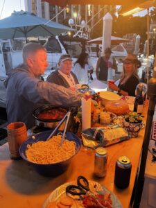 JJ’z Dockside is the place to be on Friday and Saturday Happy Hour. Bell sounds at 6:00 indicating that the bar is open. It’s a BYOB type bar and the food menu is a shared pot luck of whatever is brought down from everyones boats. Sometimes Blue Fin and Lobster that someone has caught, other times chips and dip. The conversation and friendships are always top notch!